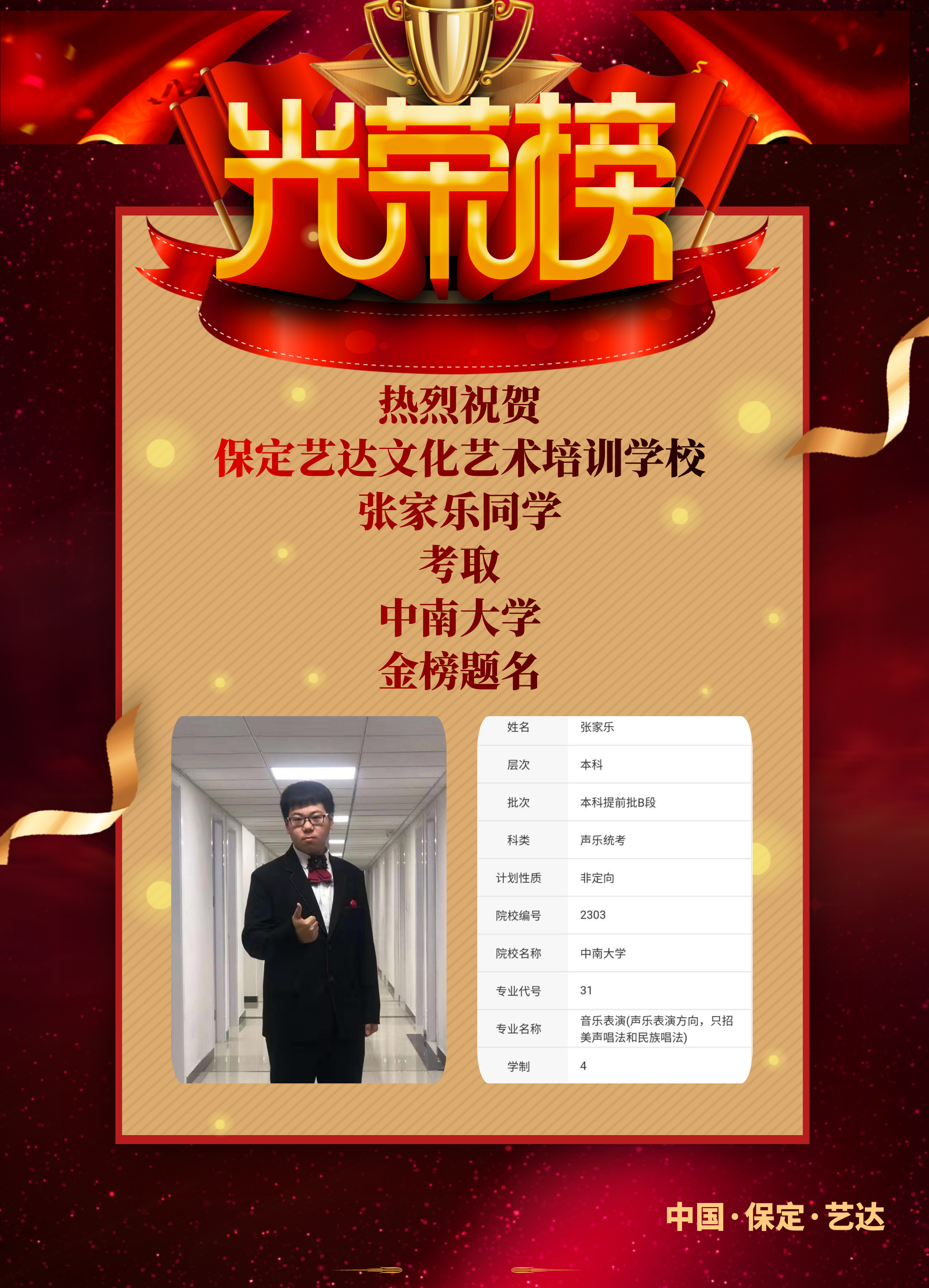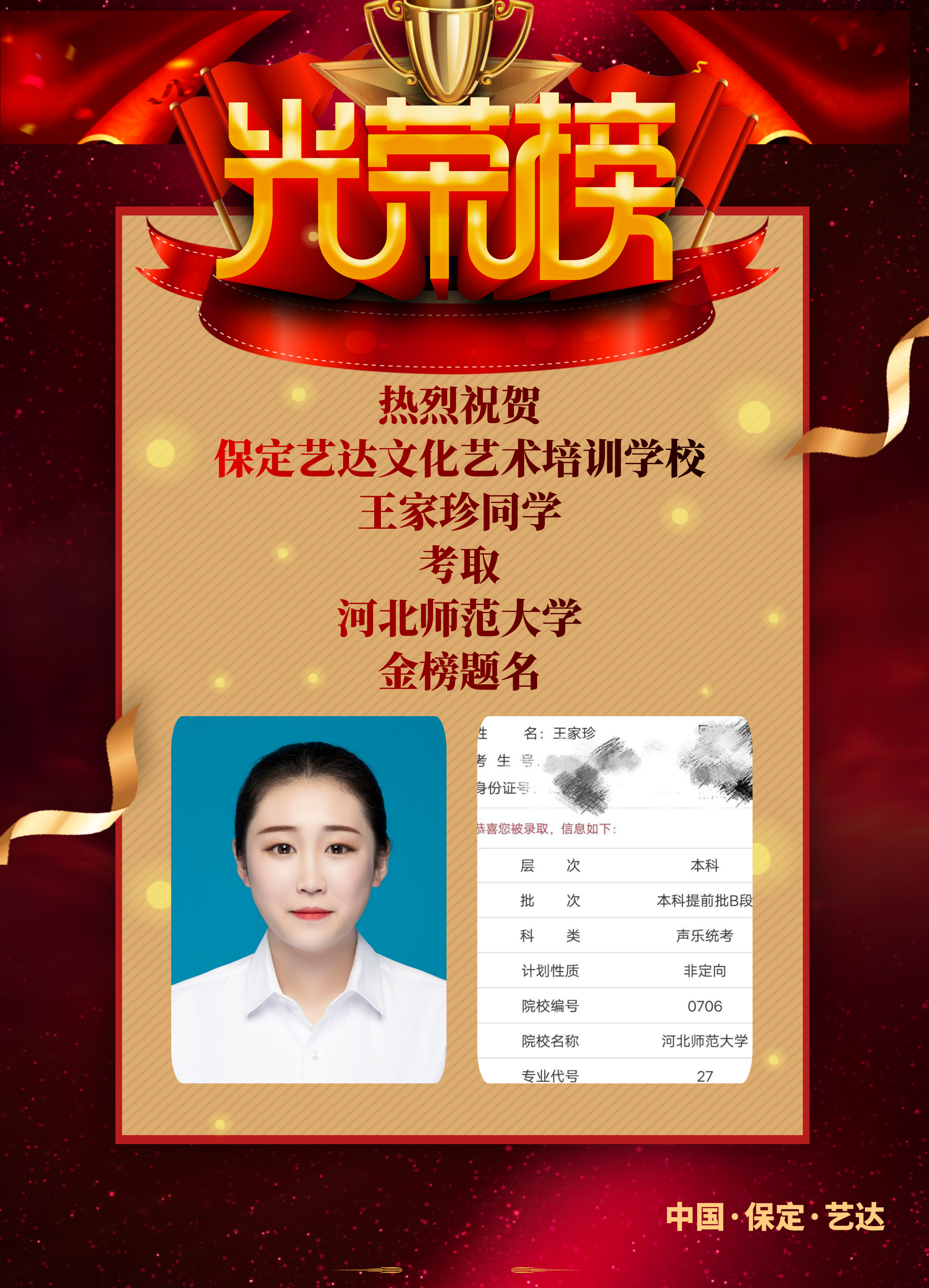 艺达学子在2020年省联考中取得骄人成绩。声乐联考前十名艺达学子入围3人。前二十名入围3人。目前本科A段、B段录取落下帷幕。