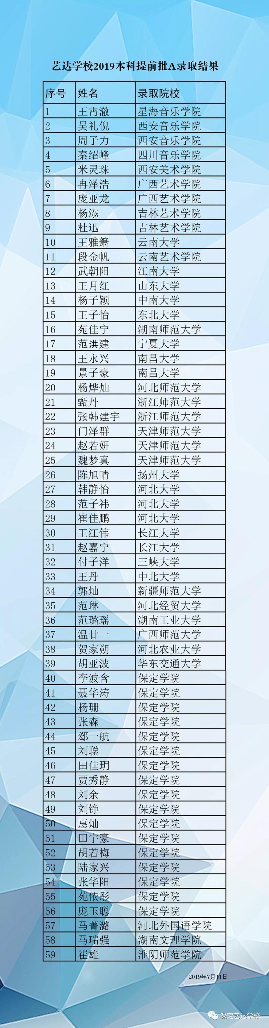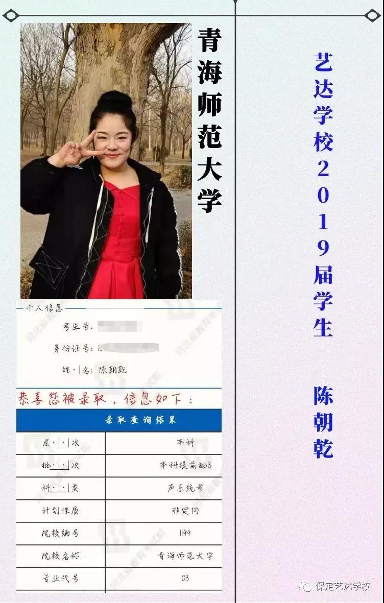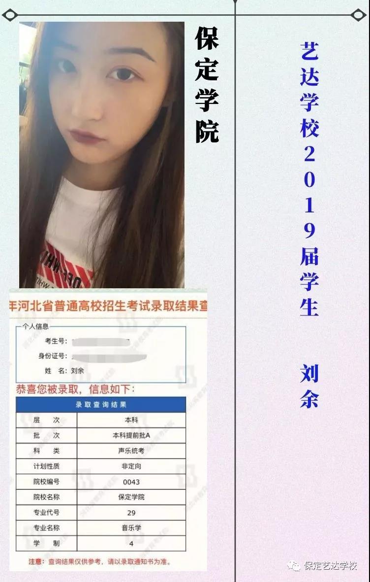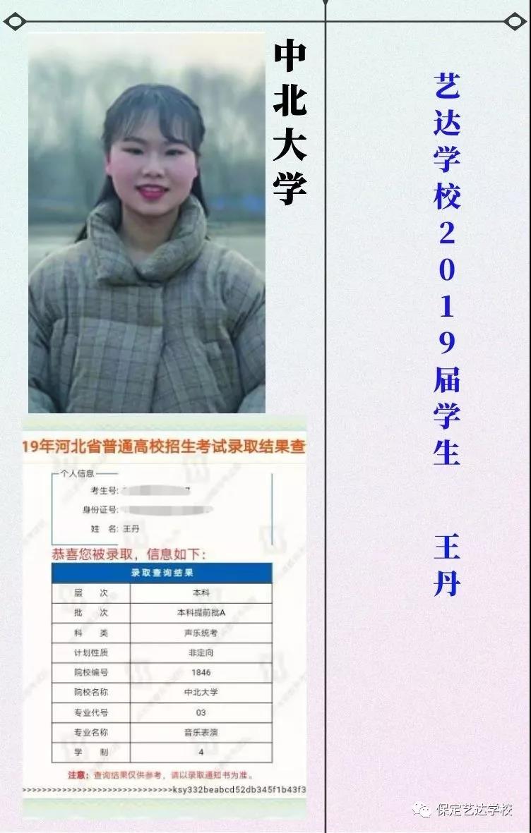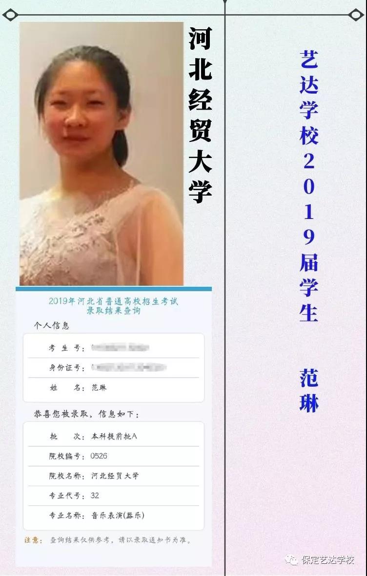 热烈庆祝艺达学校的同学在2019年高考中取得优异成绩,被星海音乐学院、西安音乐学院、四川音乐学院、西安美术学院、广西艺术学院、吉林艺术学院、云南艺术学院、云南大学、河北大学、东北大学、中南大学、山东大学、浙江师范大学、天津师范大学、河北师范大学、南昌大学、宁夏大学、长江大学、中北大学等各省一本名校成功录取。